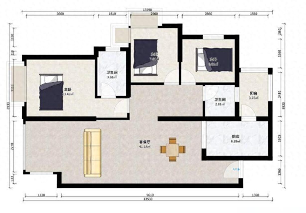 2、若卫生间里没有窗户,且家里就3口人居住,那么就没必要保留主卫。因为暗卫更容易潮湿、发霉、出现异味等问题。