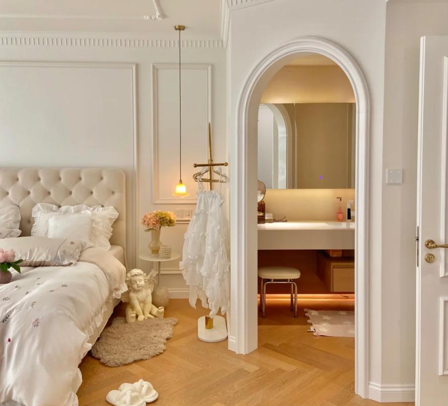 若喜欢大空间,又没有其它功能需求,那么将卫生间拆掉,合并到主卧室里,也是一个很不错的处理方式,但要注意承重墙。