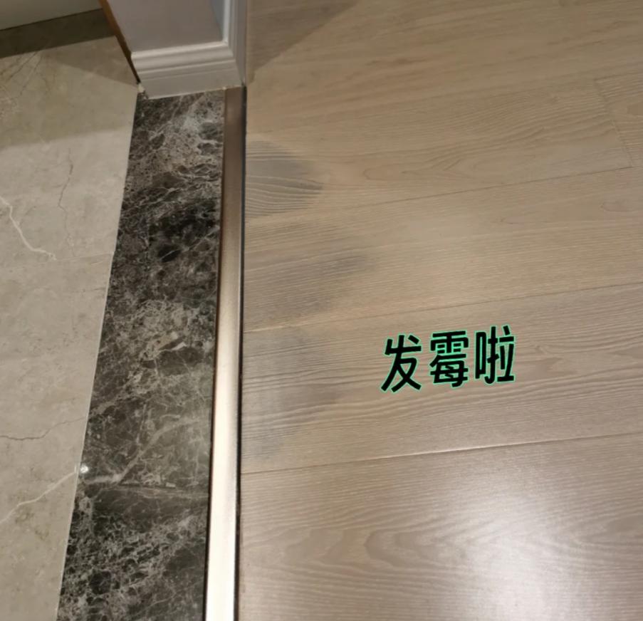 网友@是小培呢:我的主卫门口地板就出现了发霉的问题,起初还以为是每次洗澡鞋子把水带出来导致的,后来才发现是门槛防水没做好导致,真担心会渗到楼下。